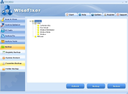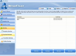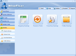 Backup:WiseFixer™ provides you Registry Backup, Restore Point, Favorites Backup and Folder Backup. You can save the registry data, favorites and folder private information with WiseFixer™.